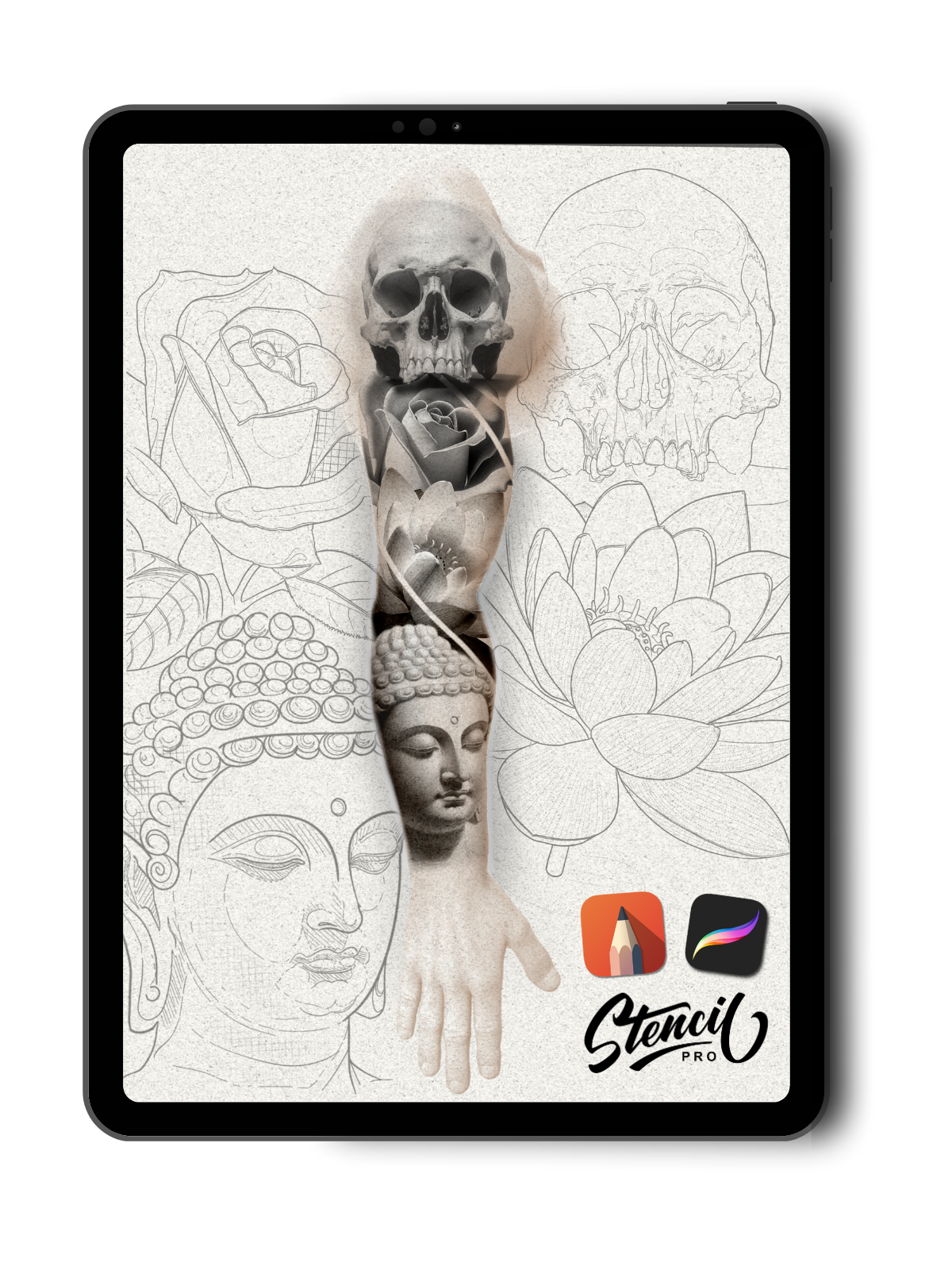 We know that not all artists use the same platform, so providing flexibility has always been a priority for us. Now, you can import our stencils directly into Sketchbook and start creating without any technical barriers. No need to switch apps—just open your favorite stencils and start tattooing!