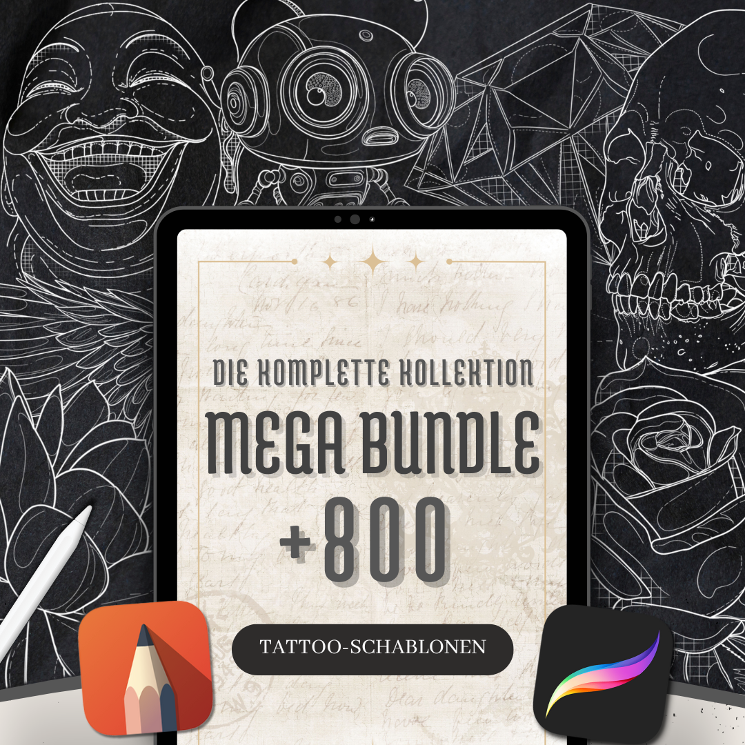 Dieses Paket enthält professionell aufbereitete Tattoo-Schablonen, die für reale Studio-Workflows entwickelt wurden: