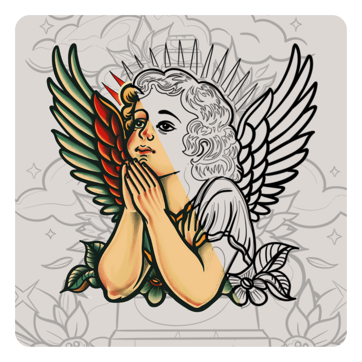Cada stencil é desenhado à mão com traços limpos, contraste equilibrado e detalhes pensados para tatuagem — sem contornos de IA confusos ou arquivos inutilizáveis.
