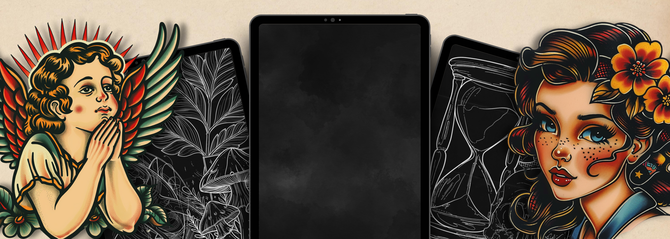 A coleção tem como foco principal stencils limpos e profissionais, com alguns pacotes que incluem designs totalmente finalizados — especialmente nos estilos tradicional e neo-tradicional.