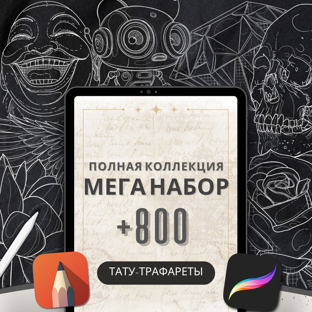 Все наборы трафаретов, flash stamp’ы и стили — объединены в одну полную библиотеку для тату-мастеров, которым нужно всё готовое к работе.